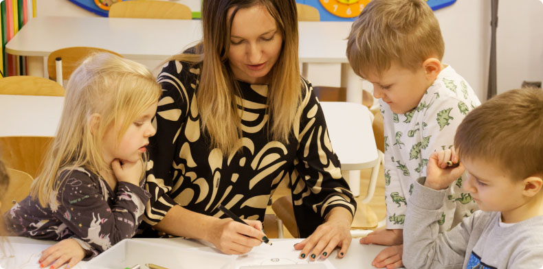 Nie jest to zatem tylko zwykłe osłuchanie się z językiem obcym, czy przyswojenie kilku słówek lub piosenek po angielsku. Dzięki nam dziecko stawia solidny fundament językowy.