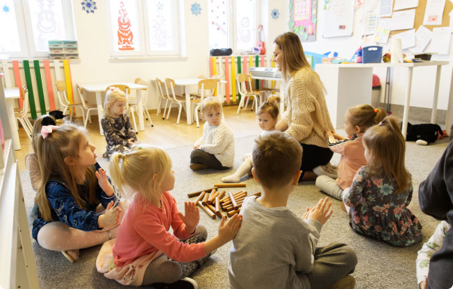 Zajęcia z rytmiki są wzbogacone o elementy muzykoterapii dzięki której dzieci rozwijają się w każdej sferze muzyki. Zajęcia prowadzone są w oparciu o metodę OZURA (odreagowanie, zrytmizowanie, uwrażliwienie, relaksacja i aktywizacja). Celem zajęć jest obniżenie napięcia psychofizycznego i emocjonalnego, motywacja do aktywności poznawczej i ruchowej, ćwiczenia orientacji w przestrzeni, rozwijanie ekspresji twórczej, redukcja lęków i napięć, budowanie zaufania, wzmacnianie wiary w siebie, radość i satysfakcja. Dzięki zajęciom umuzykalniającym u dzieci rozwijają się funkcje adaptacyjne, rozwojowe, wychowawcze, ekspresyjne i emocjonalne.